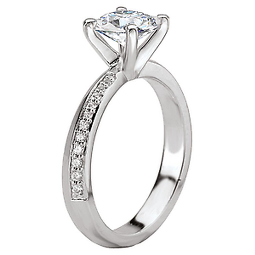 Mirror Image Diamond Ring in 14kt White Gold. (D.1/10 carat total weight) This item is a SEMI-MOUNT and it comes with NO CENTER STONE as shown but it will accommodate a 5.5mm princess center stone.